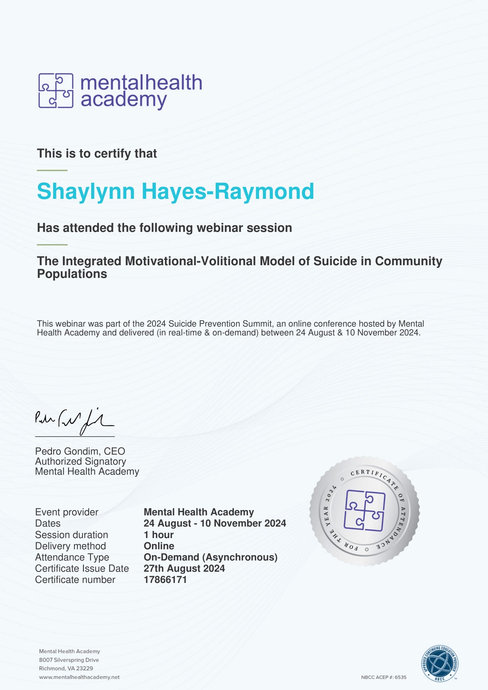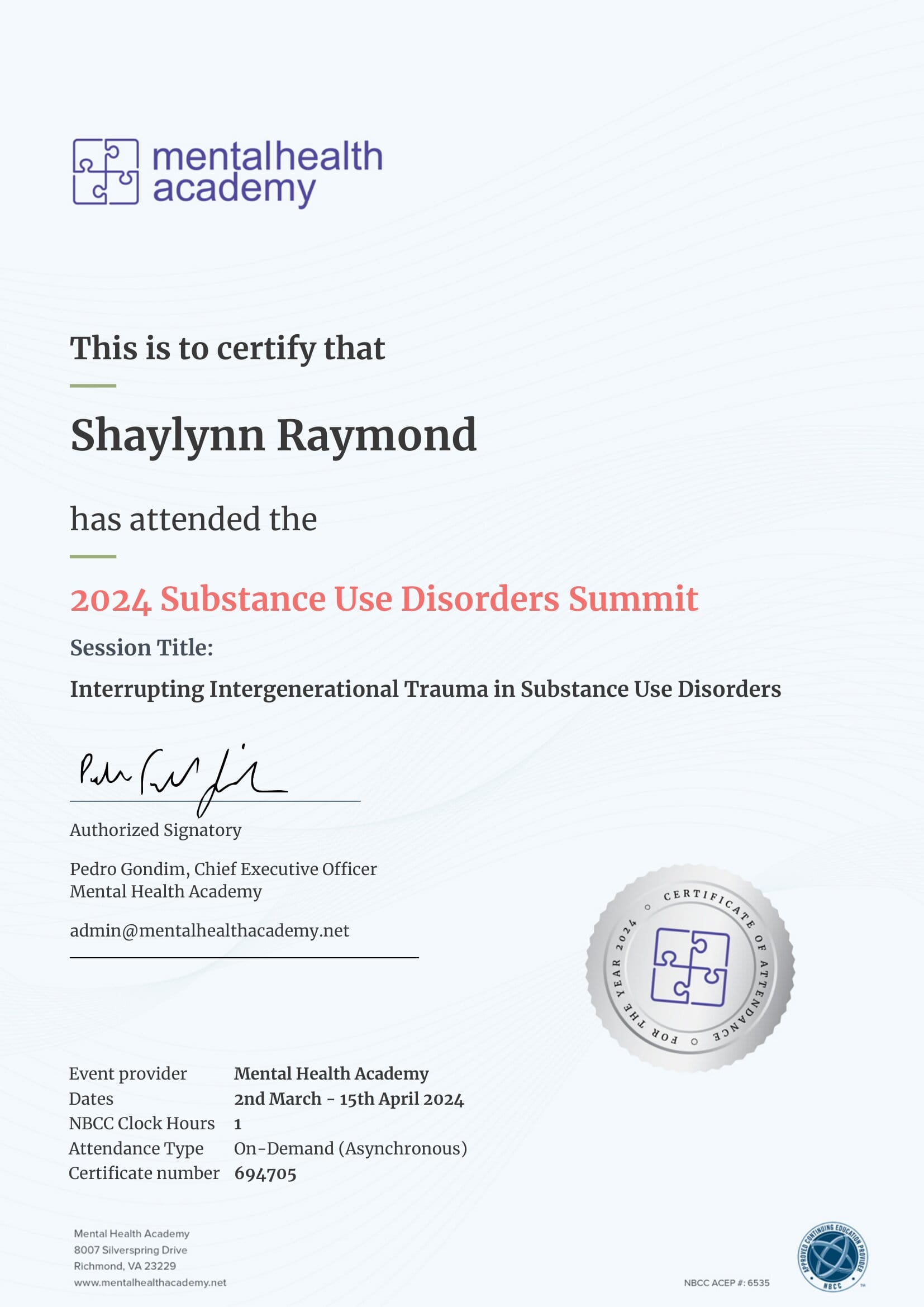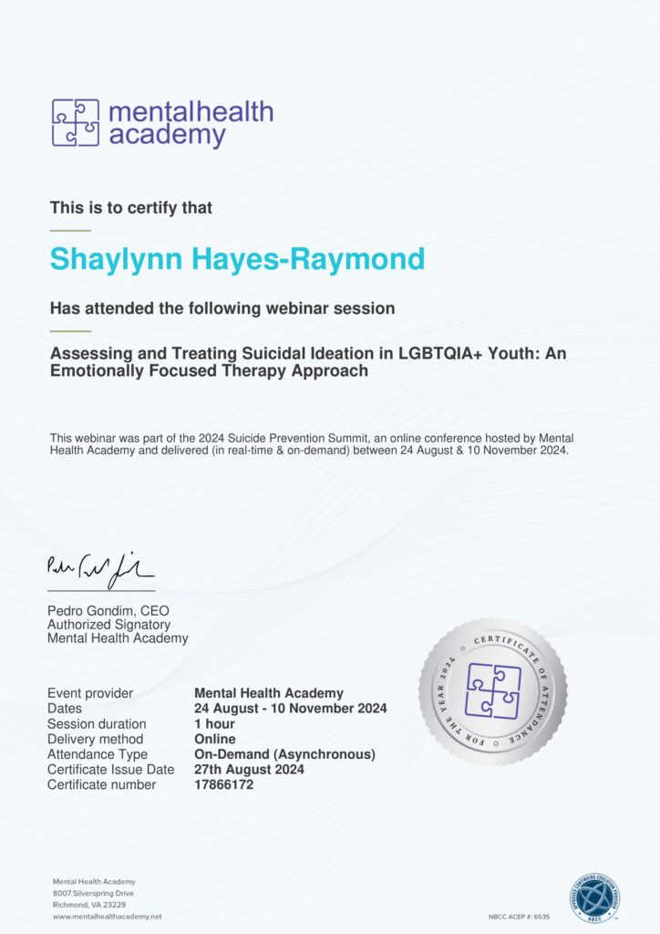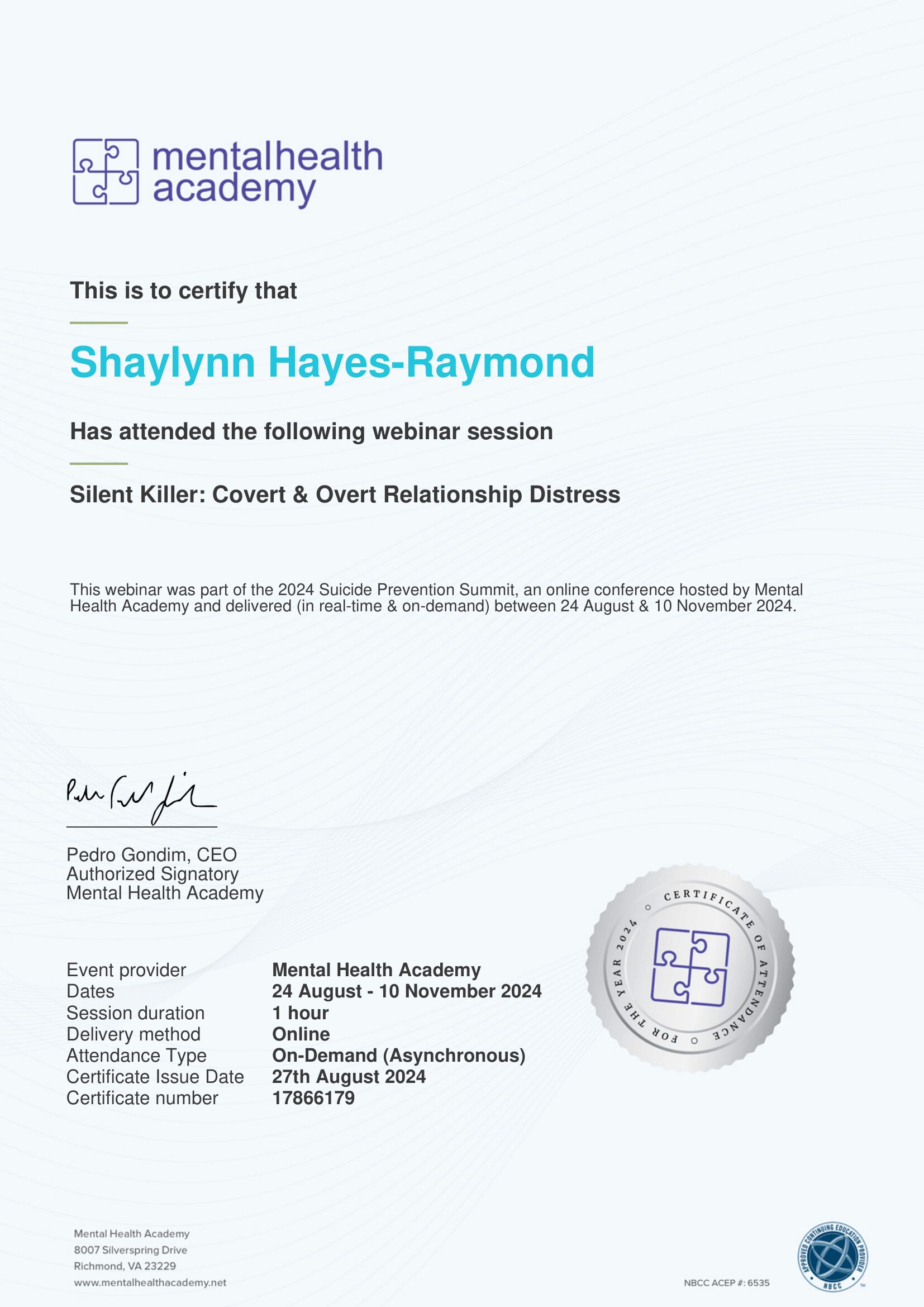 This is not an exhaustive list of all trainings, but merely a reflection of courses, trainings, and CEs that reflect my practicing interests and dedication to an eclectic approach.
