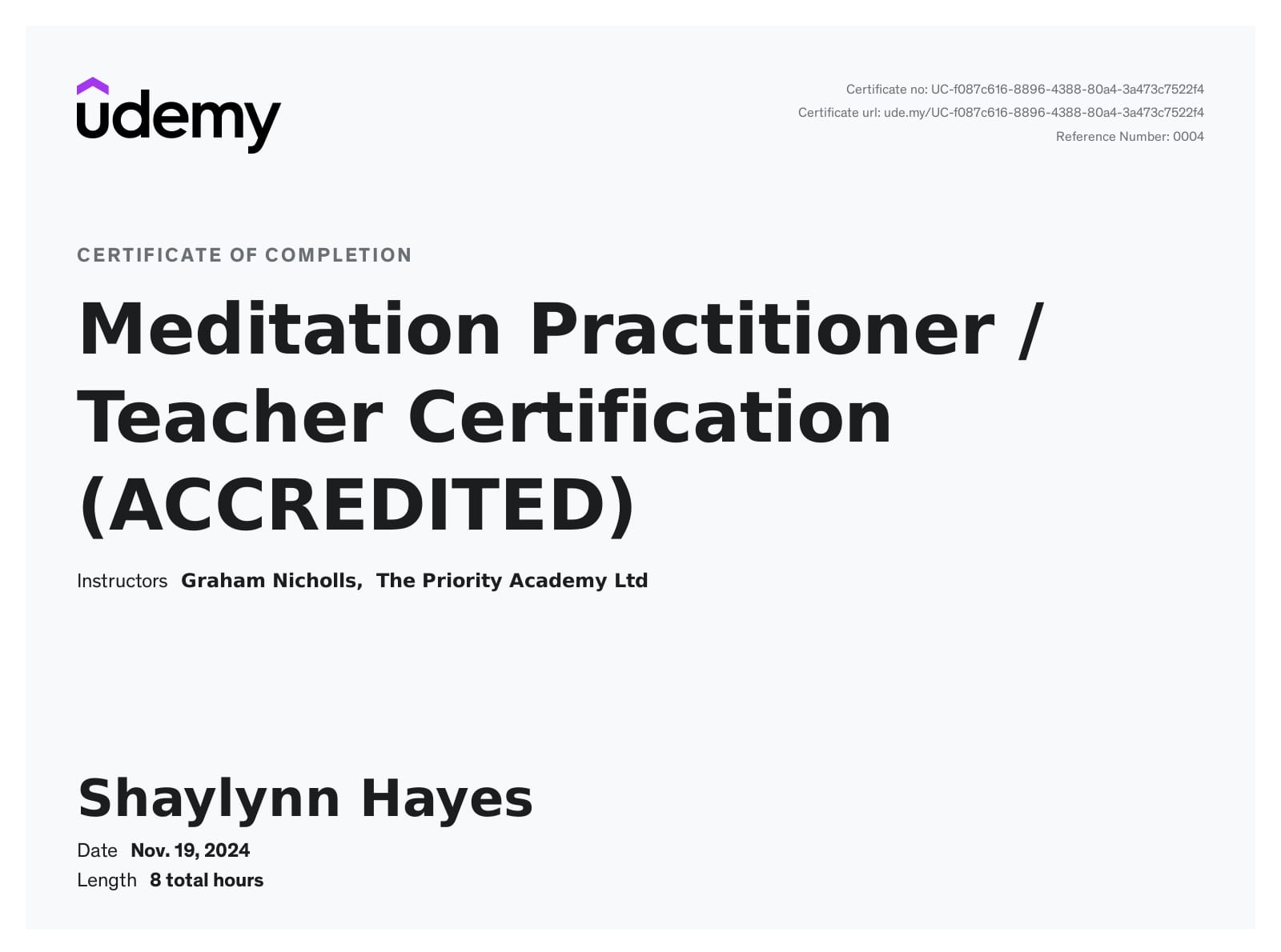A fully Accredited Meditation Practitioner / Teacher Certification course taking you from beginner to professional level